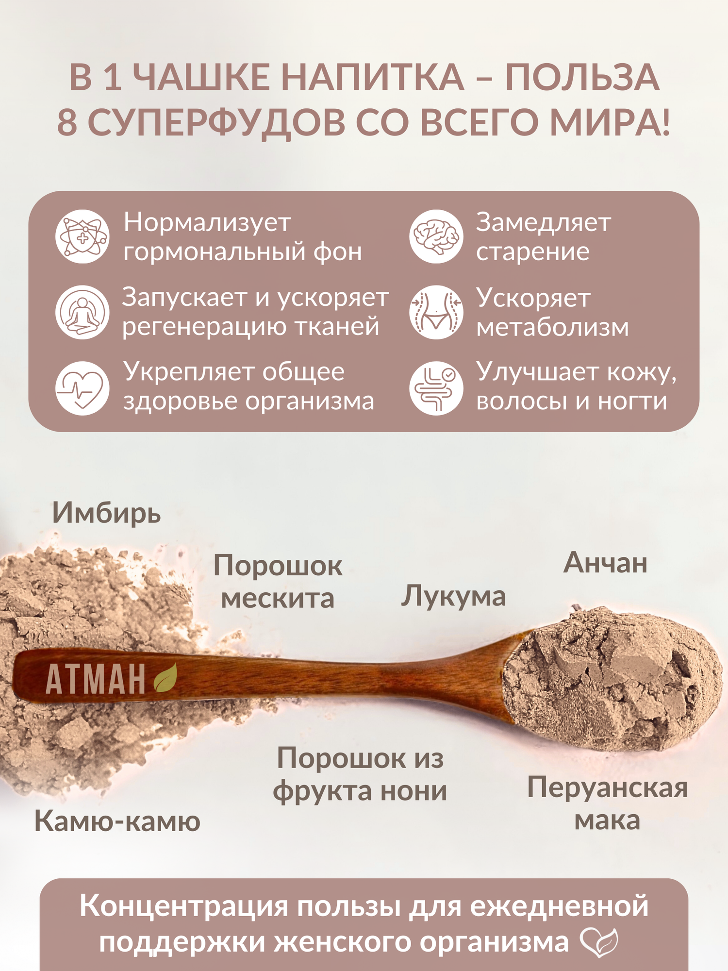 10 цен на Латте Суперфуд без кофеина без сахара без глютена без ГМО веган 40 гр, АТМАН