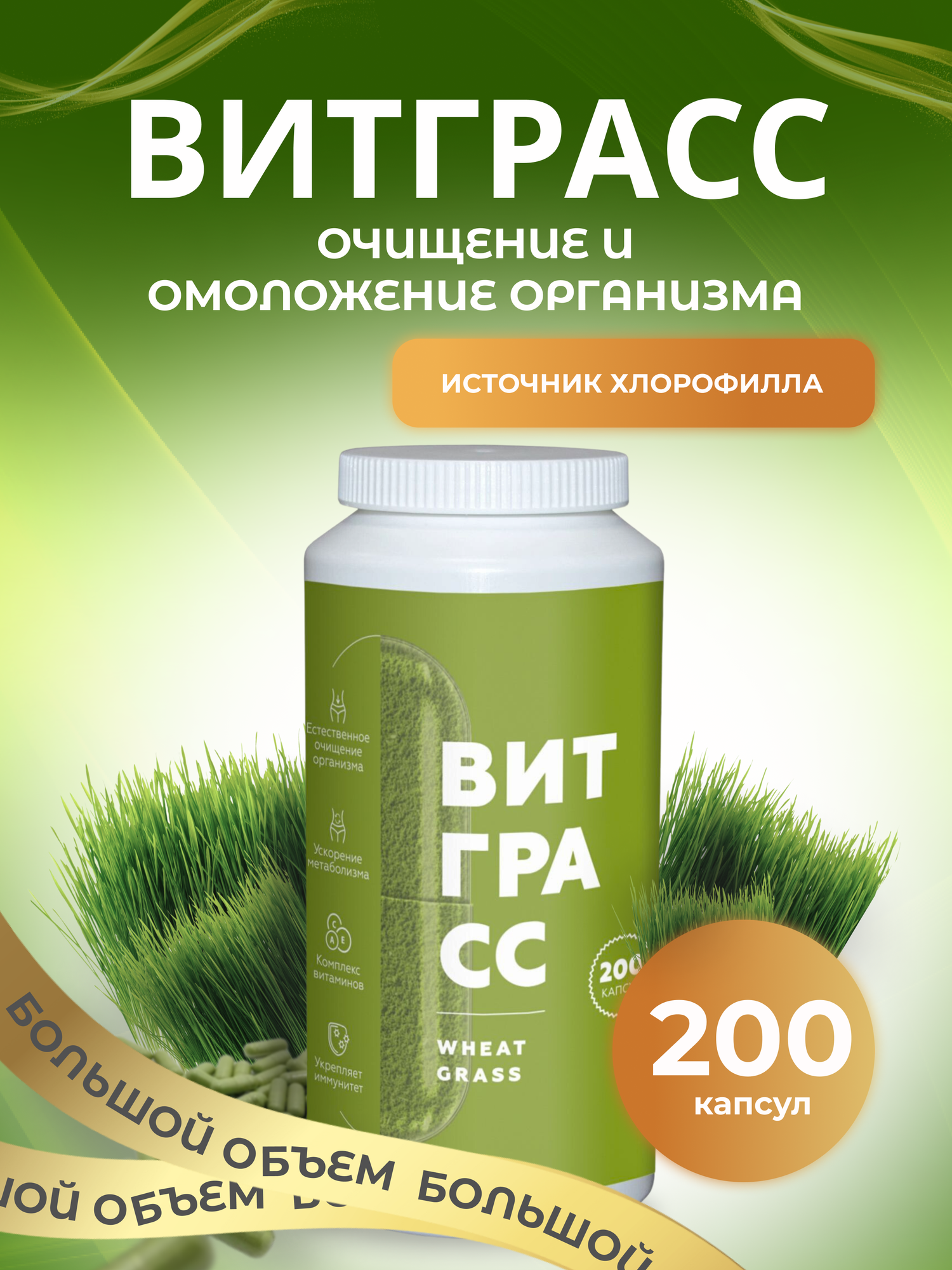 10 цен на Витграсс порошок из ростков пшеницы в капсулах, суперфуд прессованные ростки пшеницы, 200 капсул