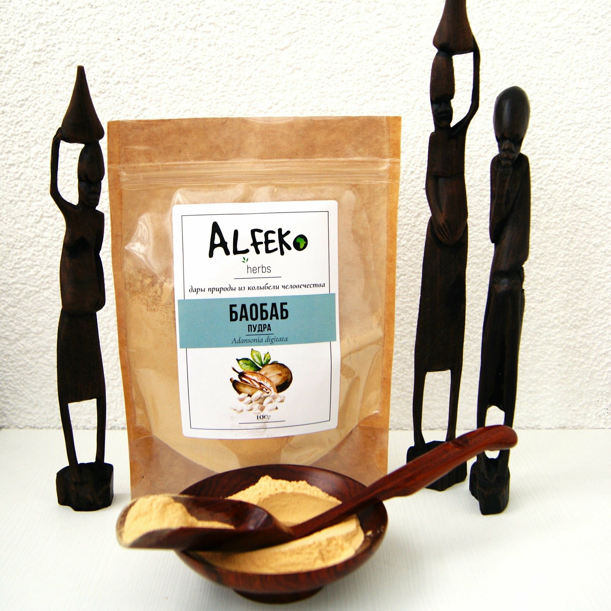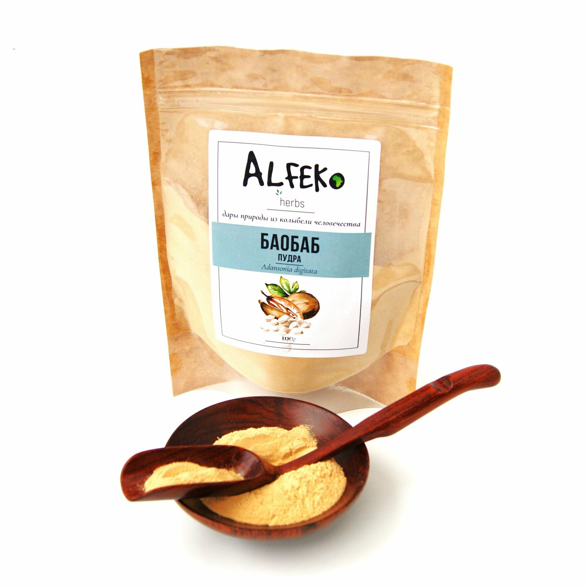 10 цен на Баобаб. Мякоть плодов сушеная, перетертая в порошок. 100 г.