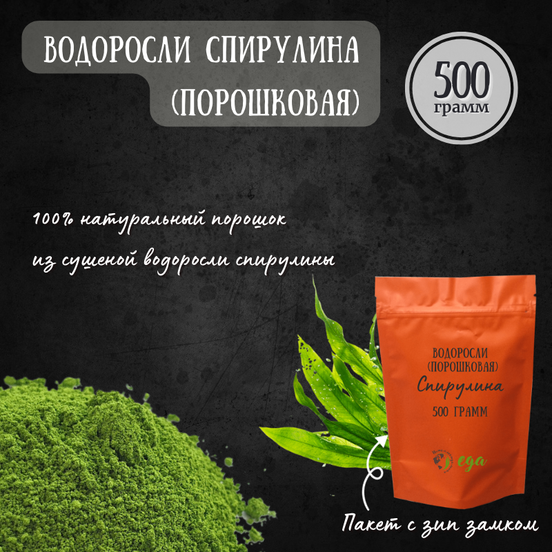 Спирулина водоросли (порошок) суперфуд ,растительный белок, 500 грамм информация:
