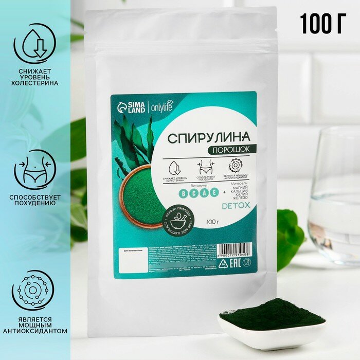 Спирулина в порошке, способствует похудению, снижение холестерина, 100 г. информация: