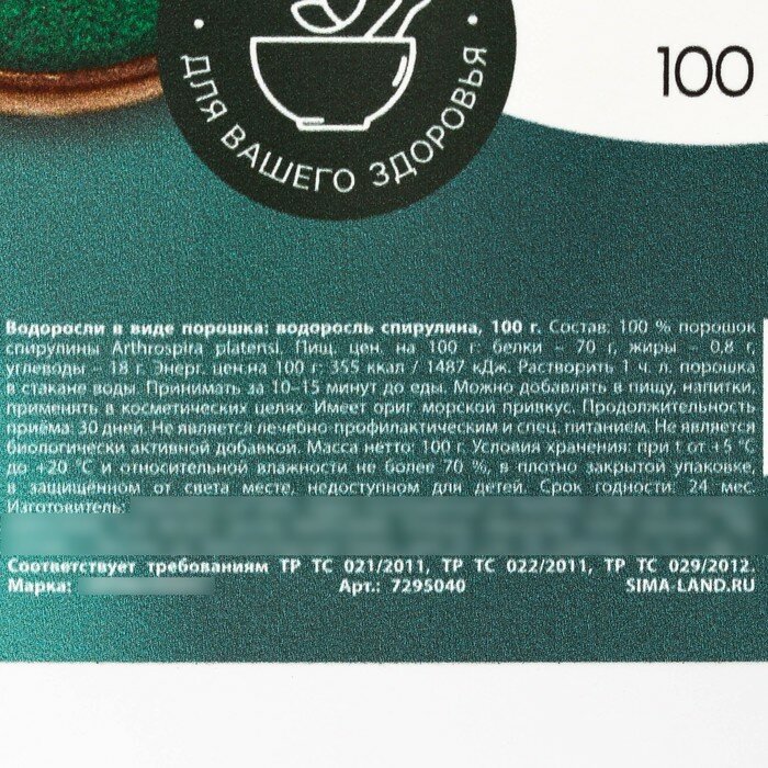 | Вид суперфуда | спирулина |