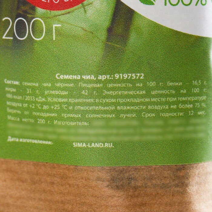 Семена чиа, источник клетчатки, витамины и минералы, 200 г. информация: