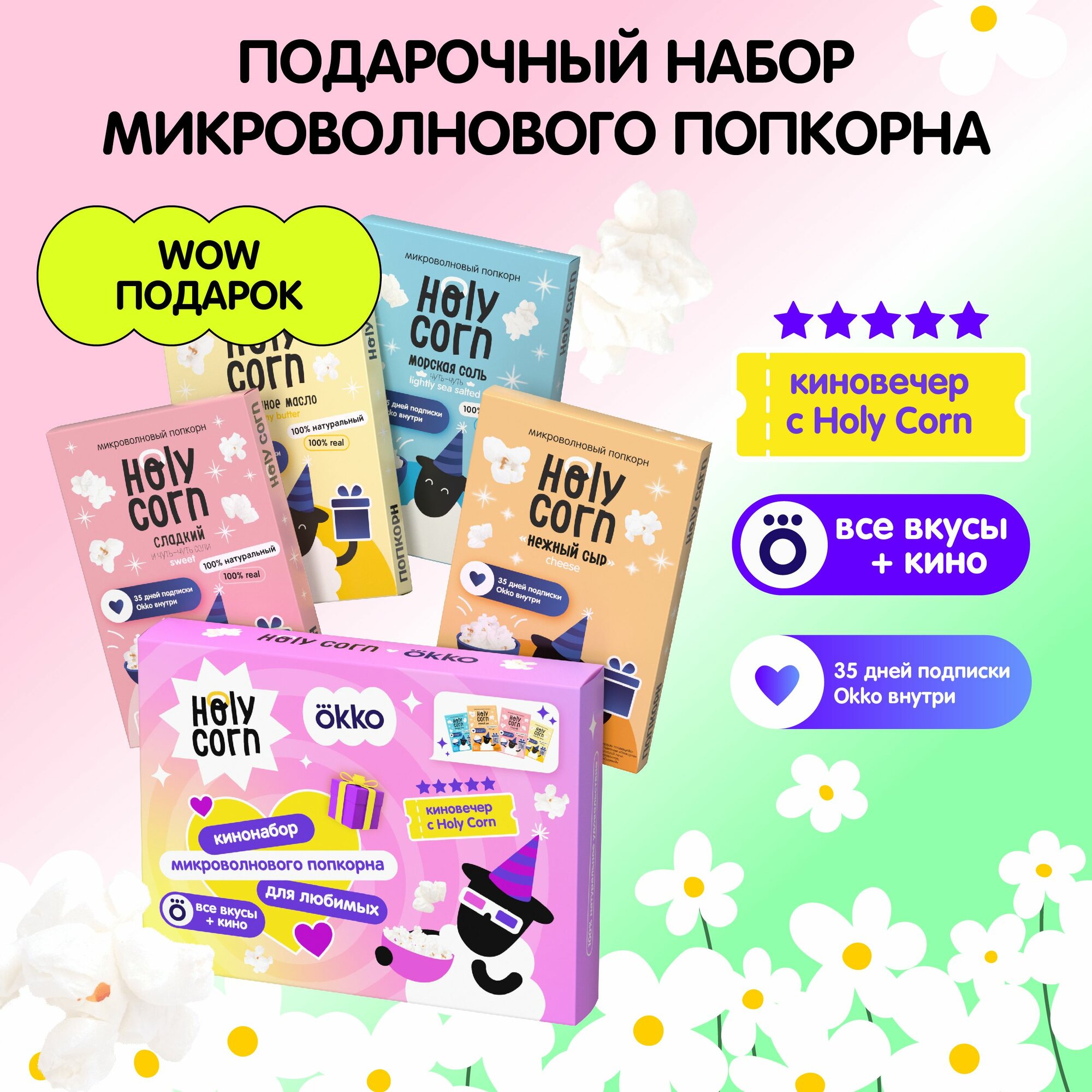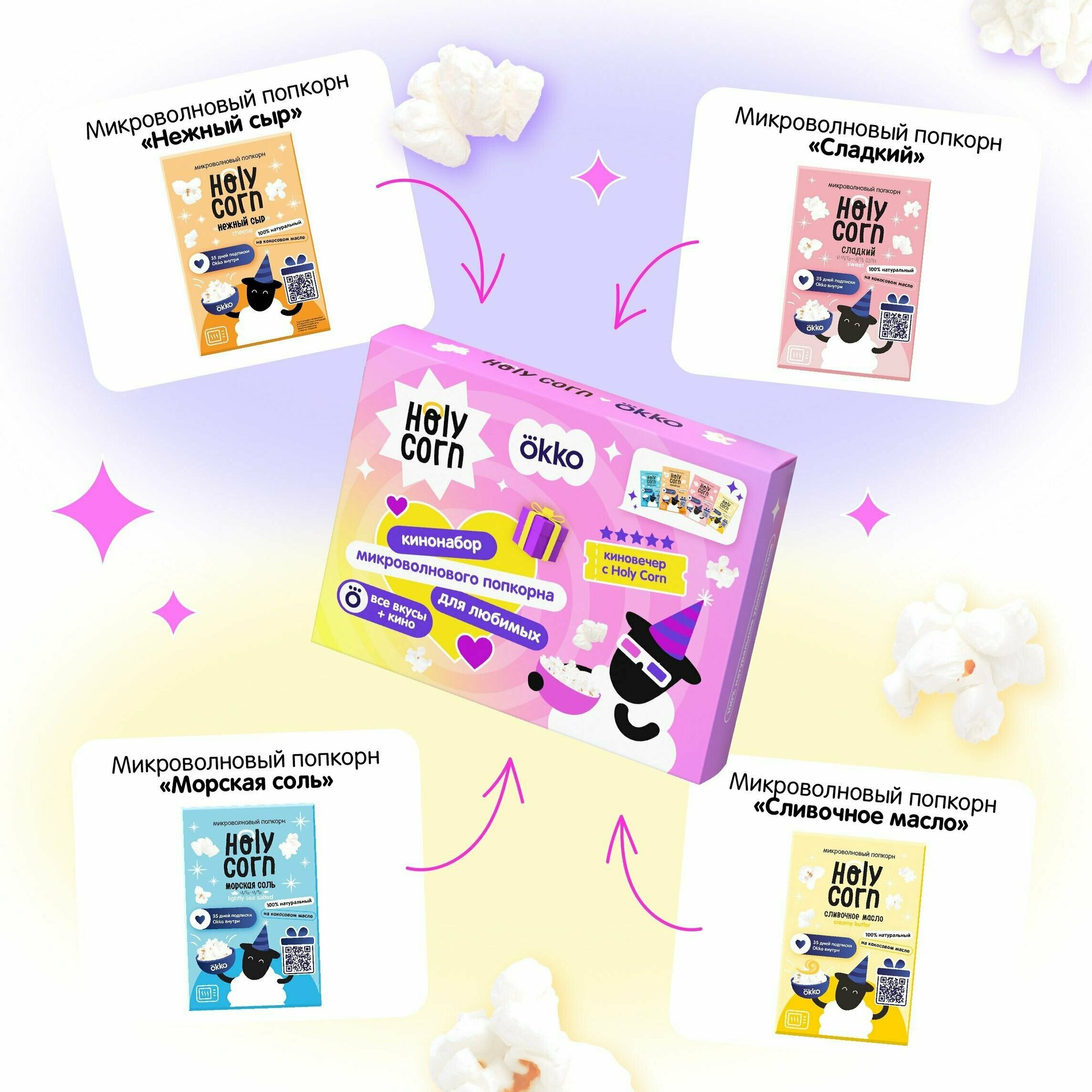 Подарочный набор микроволнового попкорна Holy Corn - 4 вкуса информация: