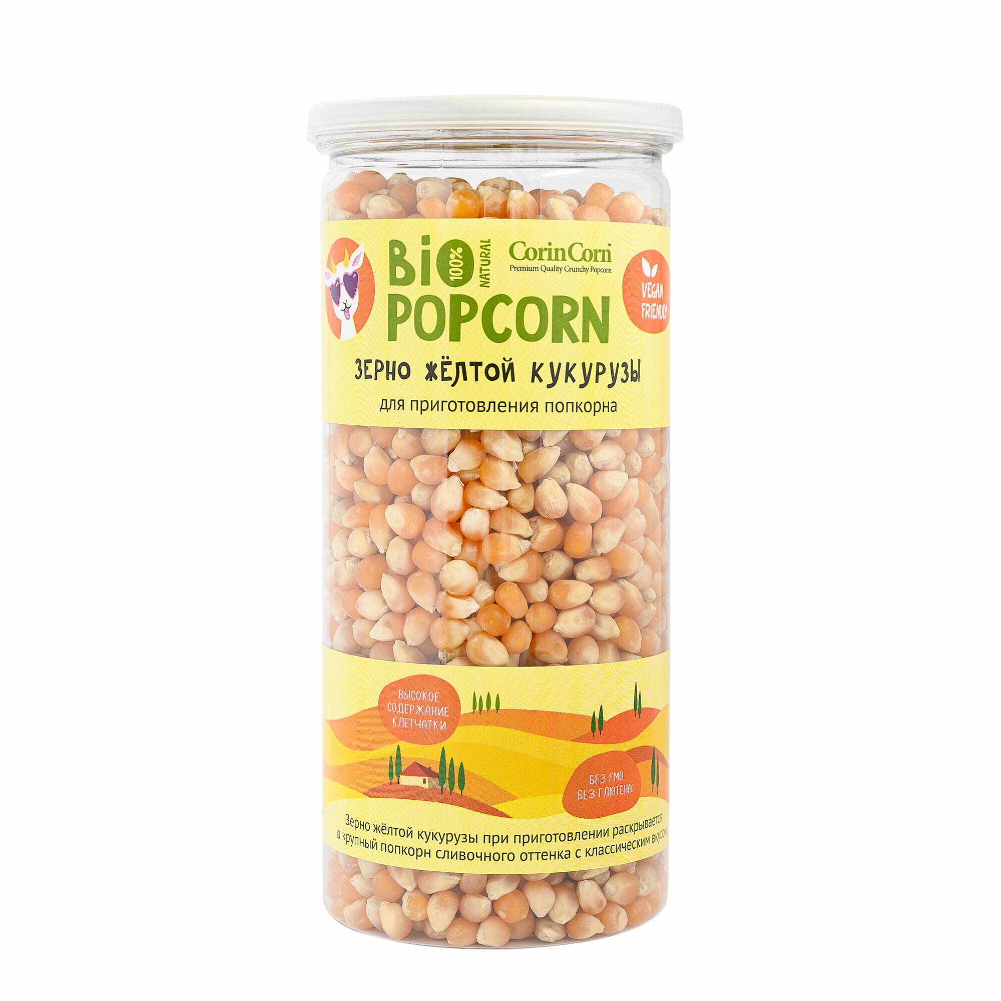 Зерно кукурузы лопающейся для приготовления попкорна CorinCorn Bio 0,4 кг, пласт. банка. Желтая