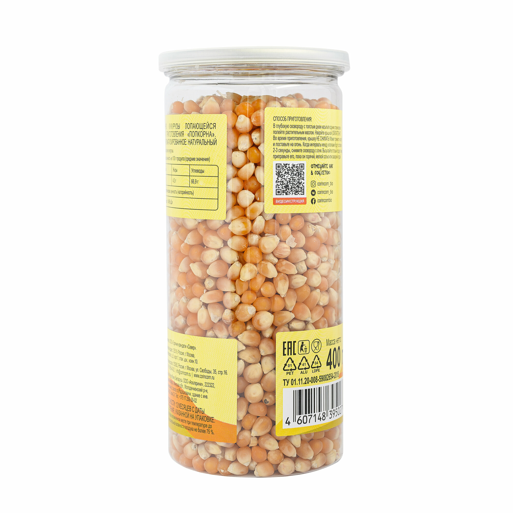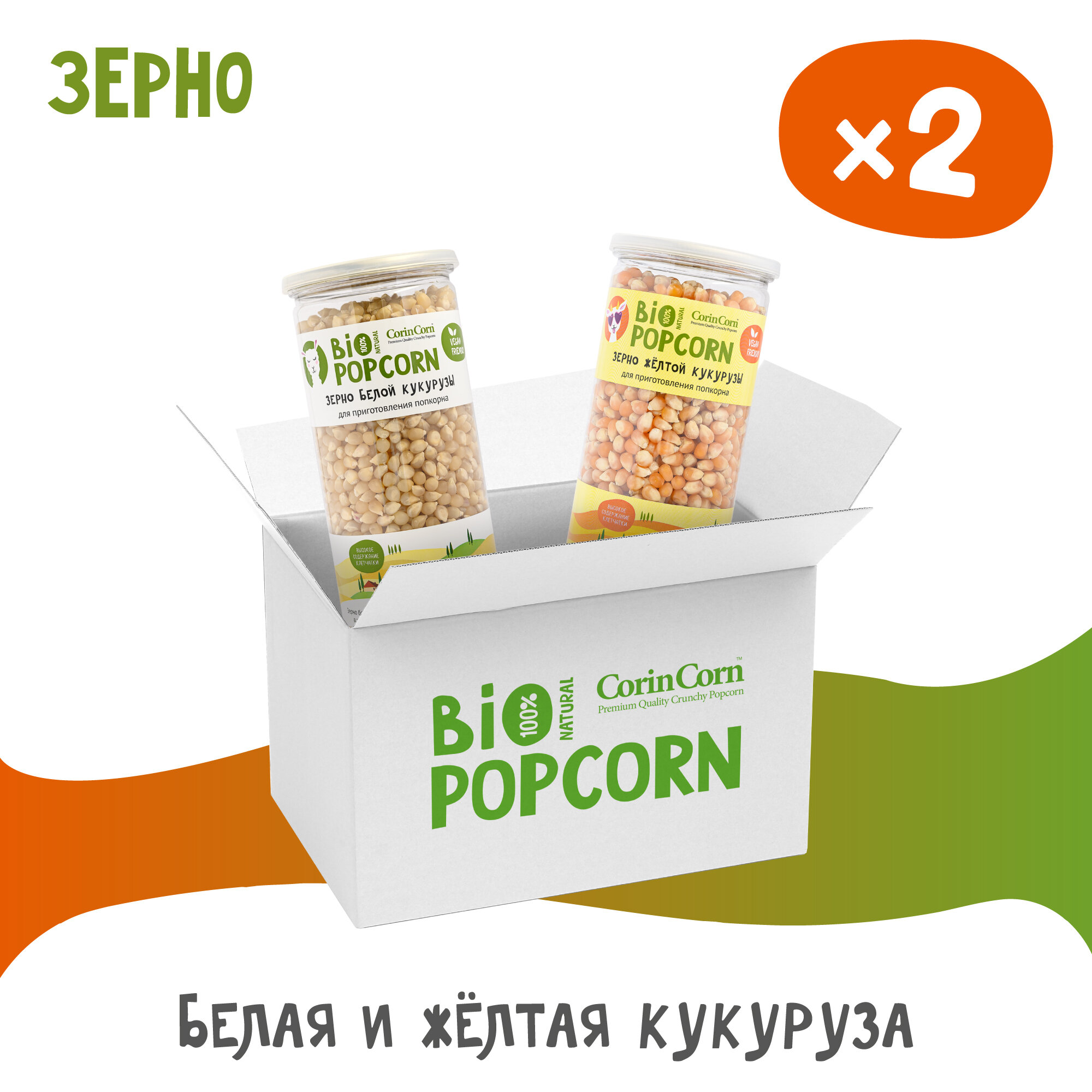 Зерно белое и желтое кукурузы для приготовления попкорна CorinCorn 2 банки х 0,4кг информация:
