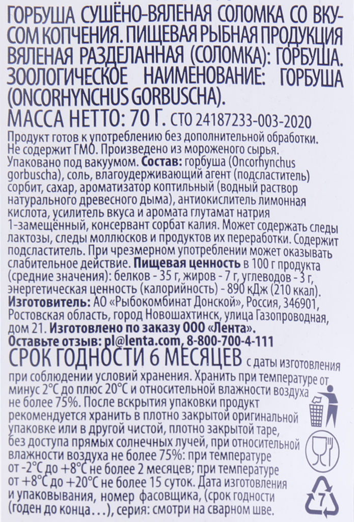 10 цен на Рыба сушено-вяленая SMAKKY соломка, 70г