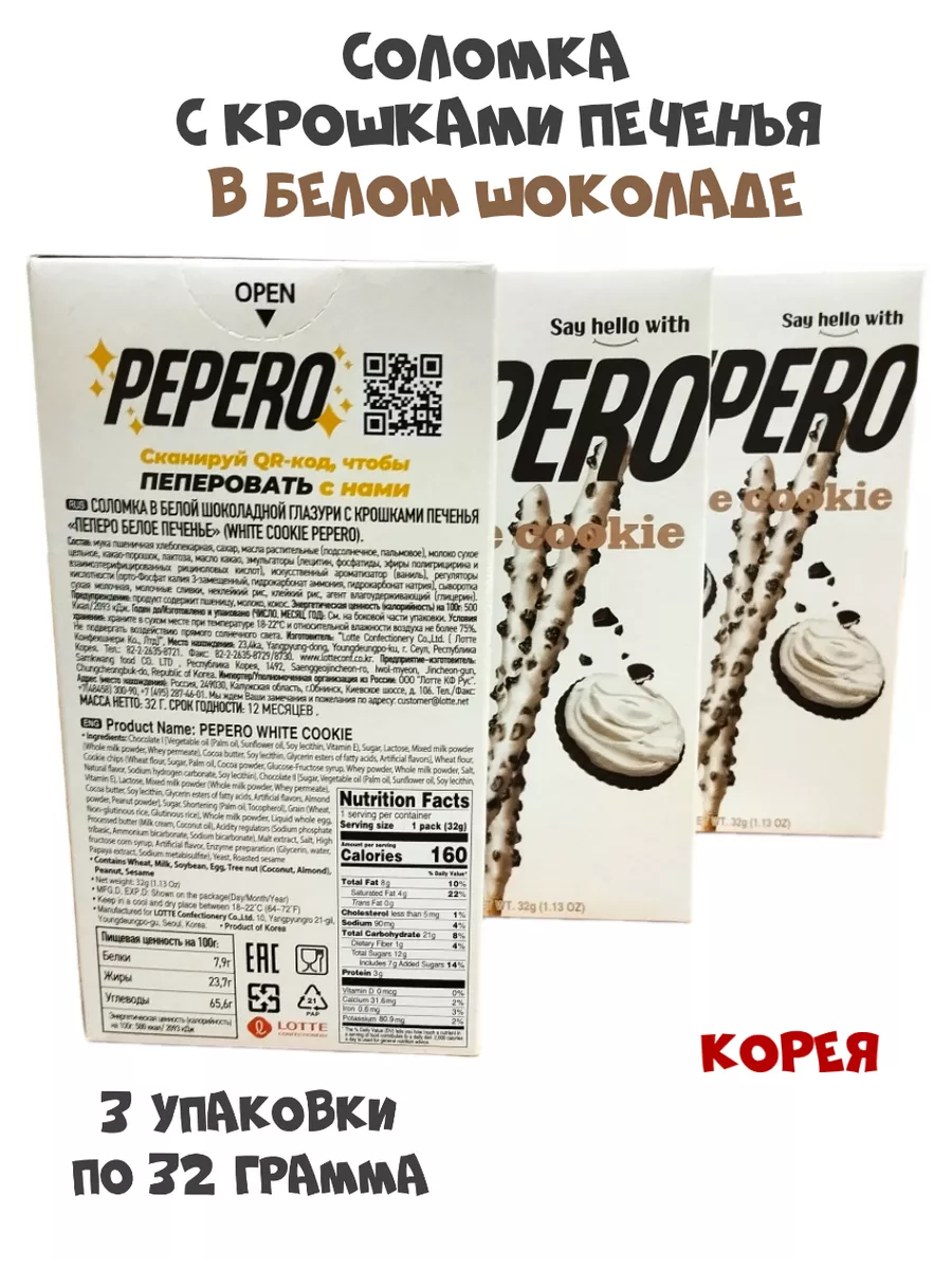 Соломка Pepero White Cookie (Пеперо Белый шоколад с печеньем), 3 упаковки по 32 грамма информация: