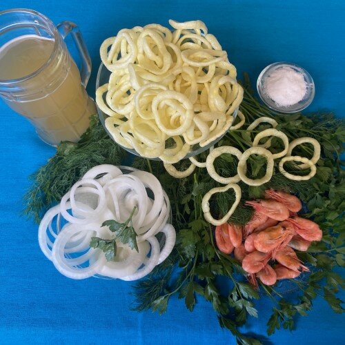 10 цен на Луковые кольца Вкусные снеки со вкусом Креветки 1кг.
