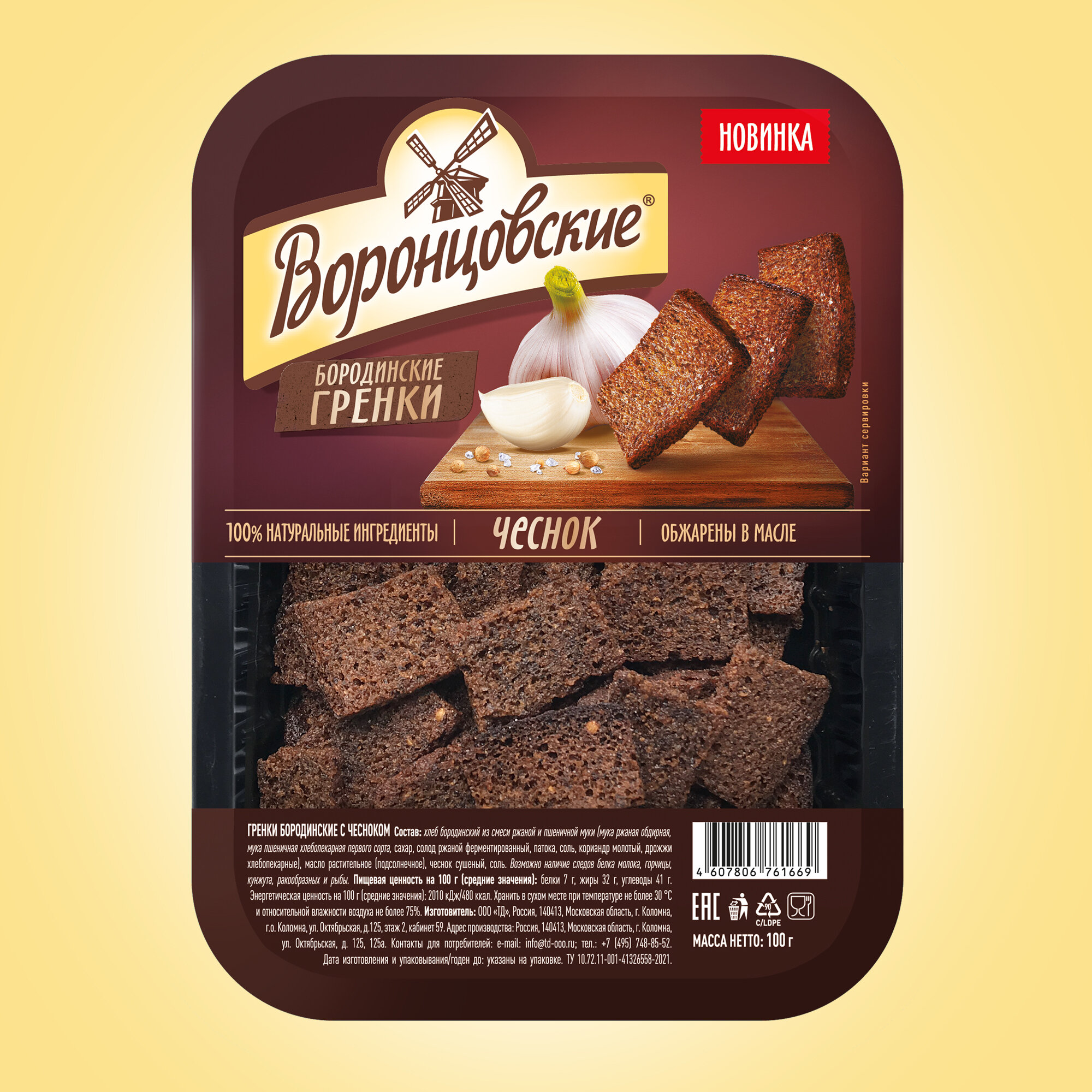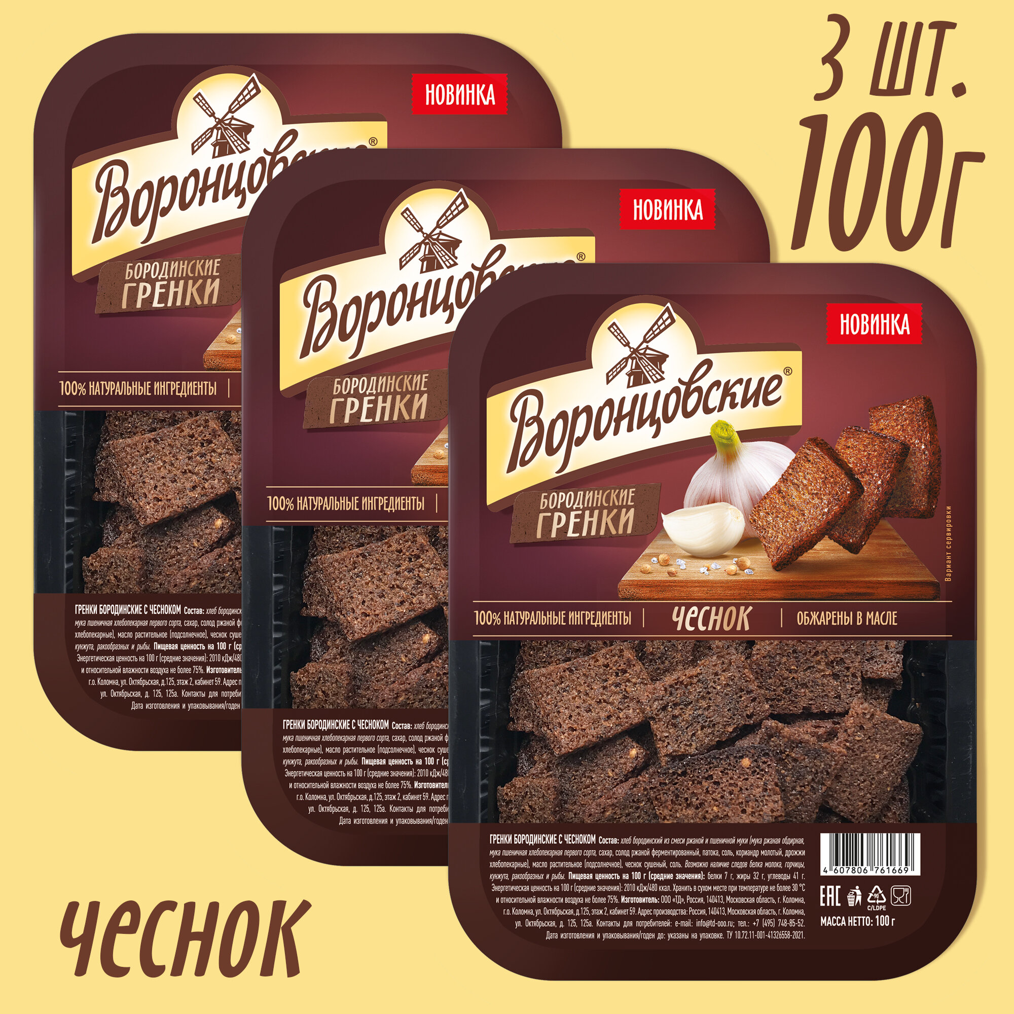 Гренки Бородинские с чесноком Воронцовские, 3шт по 100г информация: