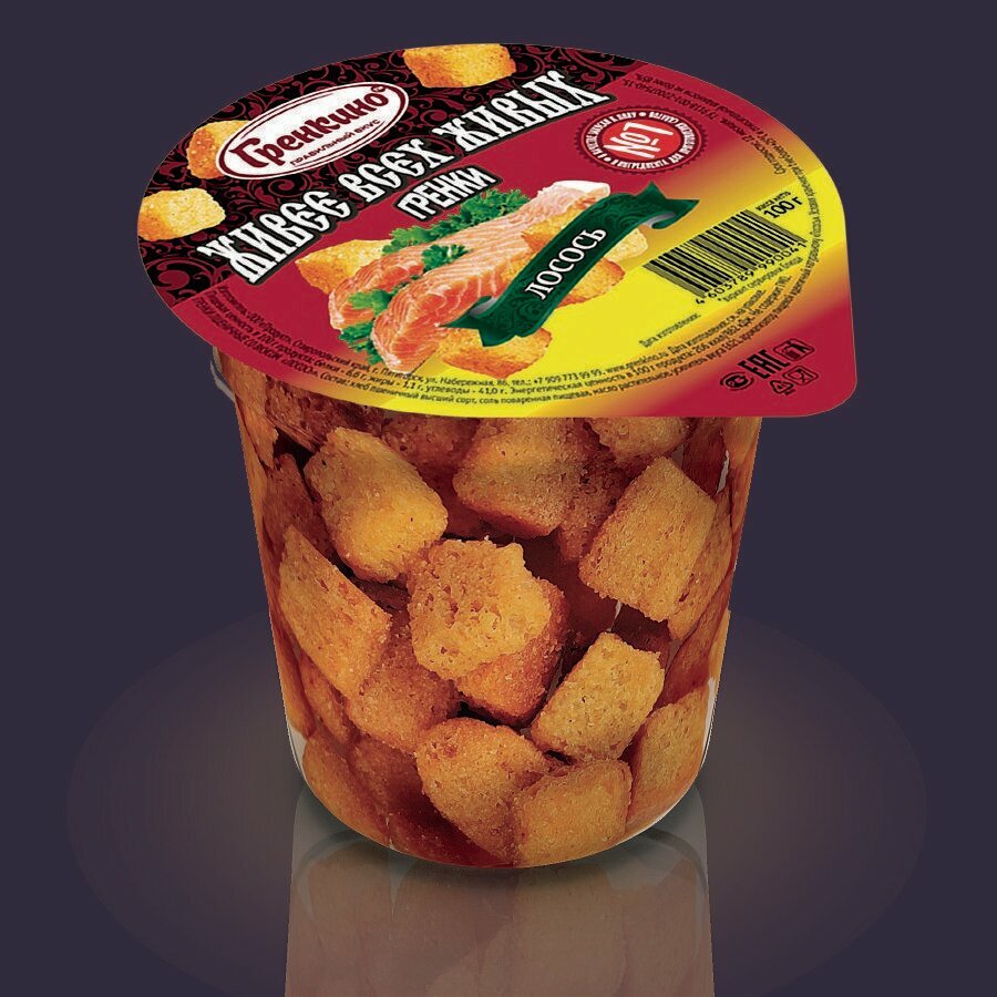 Стакан Гренки 16 штук по 100 грамм Сухарики живые снеки "Лосось" ТМ "гренкино" информация: