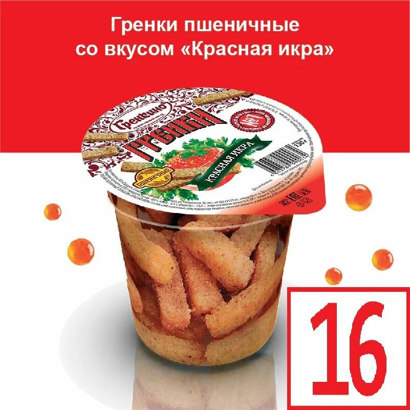 Отзывы на Стакан Гренки 16 штук по 130 грамм Сухарики Пшеничные снеки "Красная Икра" ТМ "гренкино"