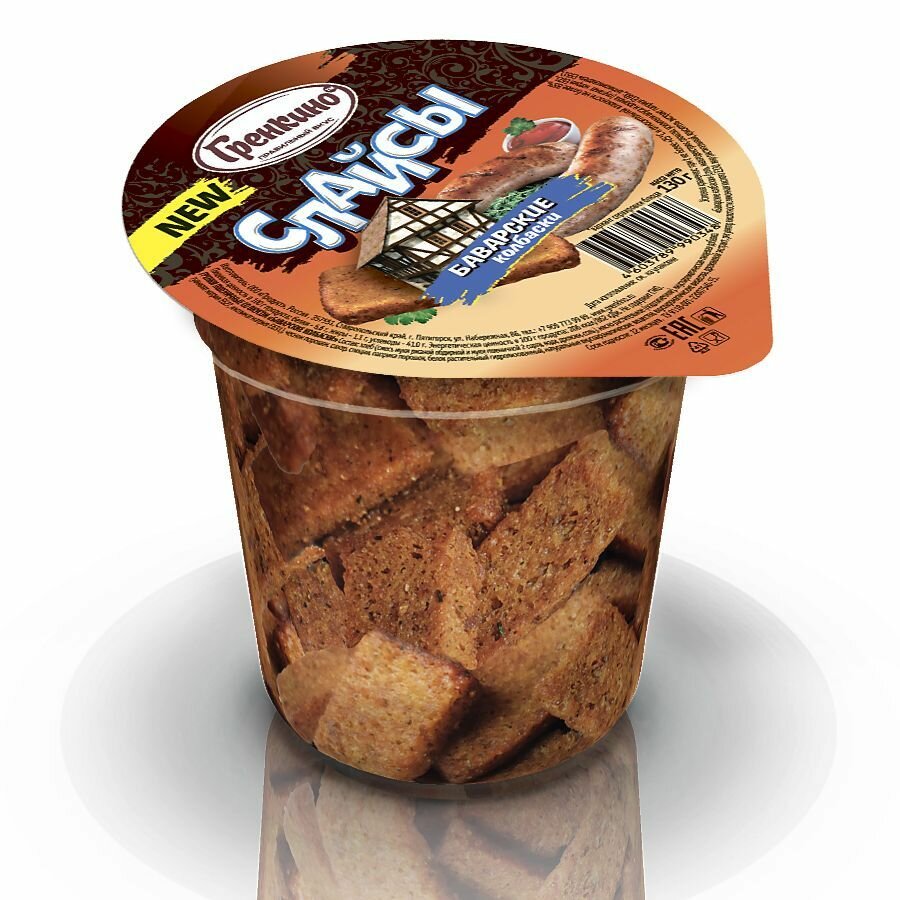 Стакан Гренки 16 штук по 130 грамм Сухарики Слайс снеки "Баварские колбаски" ТМ "гренкино" информация: