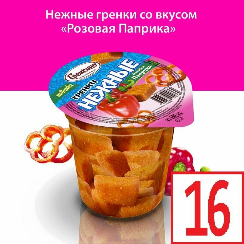 Стакан Гренки 16 штук по 100 грамм Сухарики нежные снеки "Розовая Паприка" ТМ "гренкино" информация: