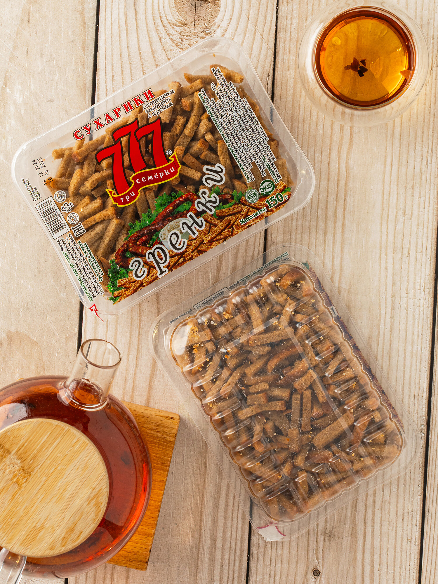 Сухарики Гренки 777 со вкусом чеснока (контейнер), 12 шт по 150 гр 1 370 ₽