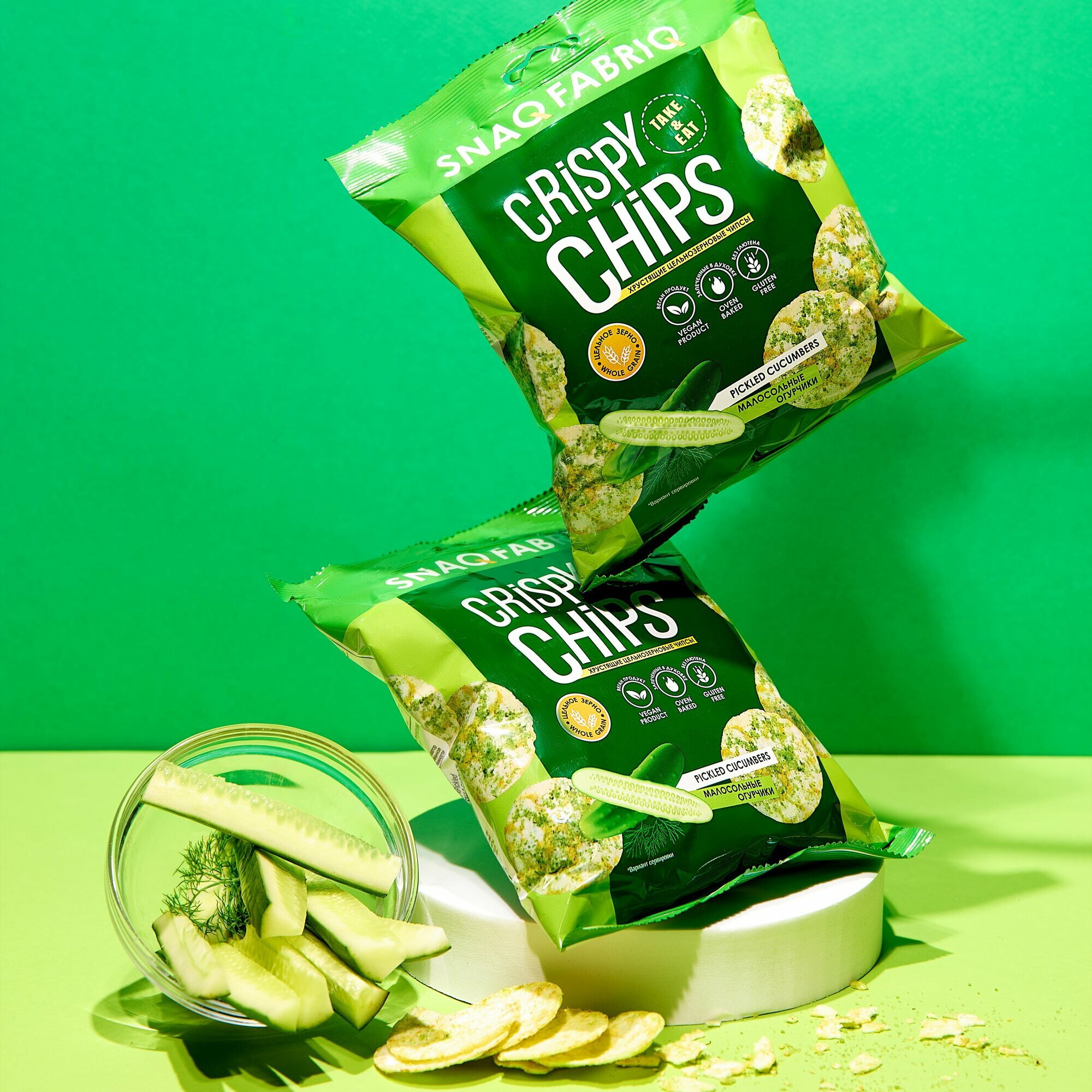 Чипсы цельнозерновые Snaq Fabriq Crispy Chips со вкусом "Малосольные Огурчики", 6шт х 50 г информация: