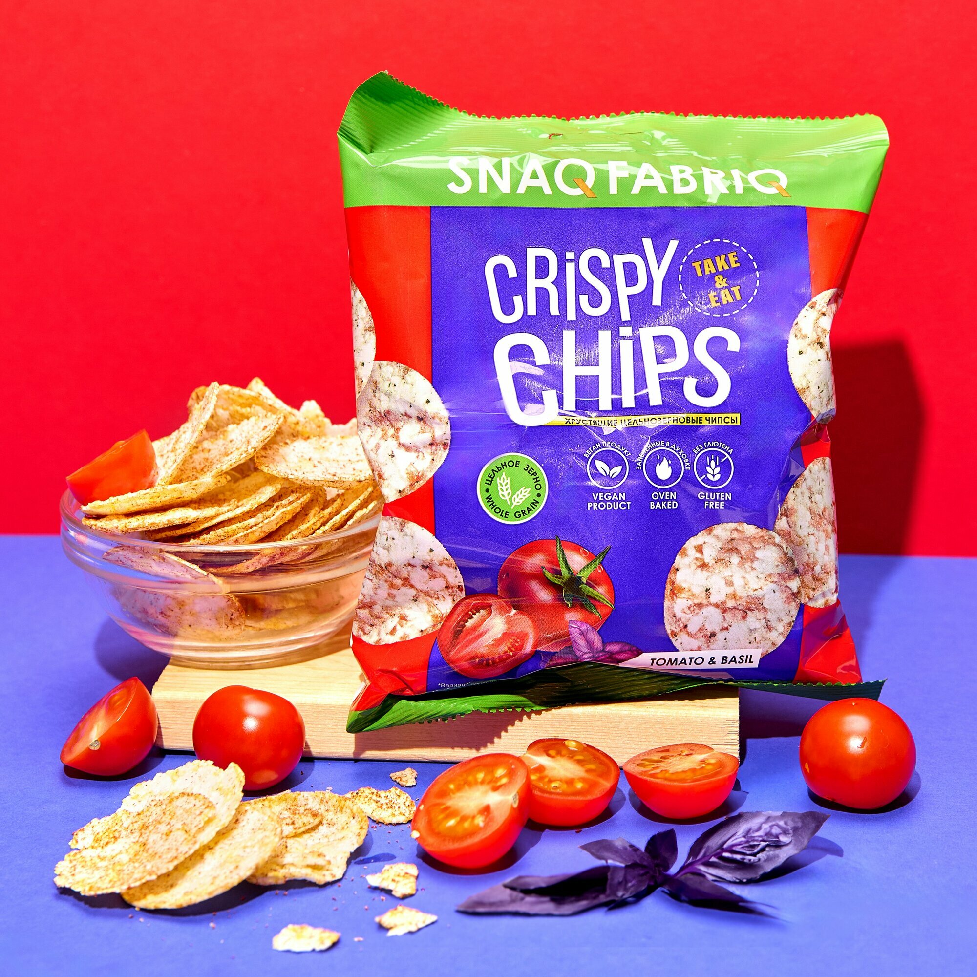 Чипсы цельнозерновые Snaq Fabriq Crispy Chips со вкусом "Томат и базилик", 50г х 6шт информация: