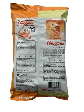 Чипсы хрустящие Бингрэ 130гр со вкусом краба "краб чипсы"
