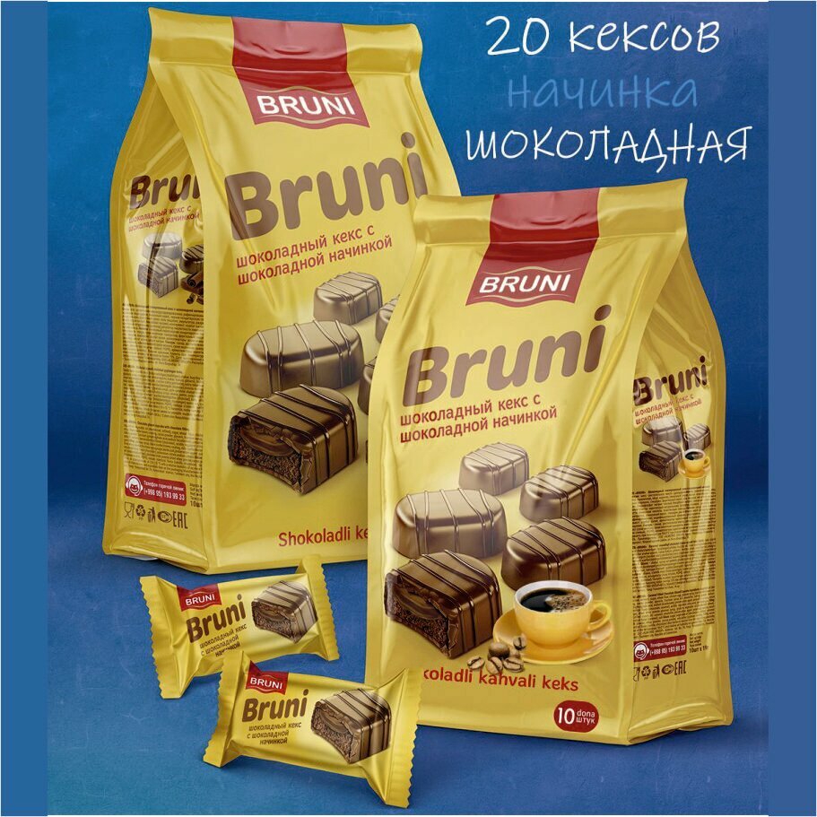 10 цен на Кекс глазированный с шоколадной начинкой 190г х 2шт BRUNI