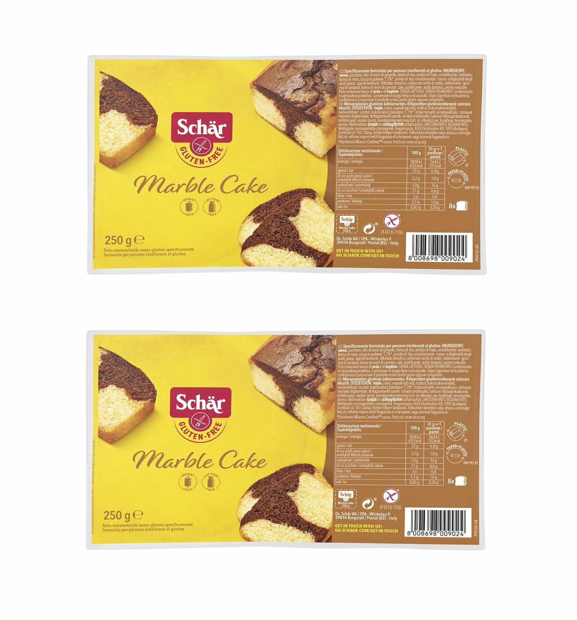 Кекс "Мраморный", т.м. Dr. Schar, 250 г (2 шт) информация:
