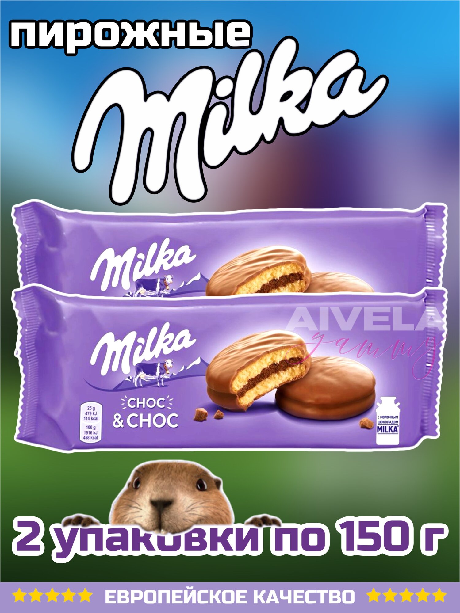 Бисквитное печенье Milka Choc Choc пирожные с какао начинкой 2 уп. информация: