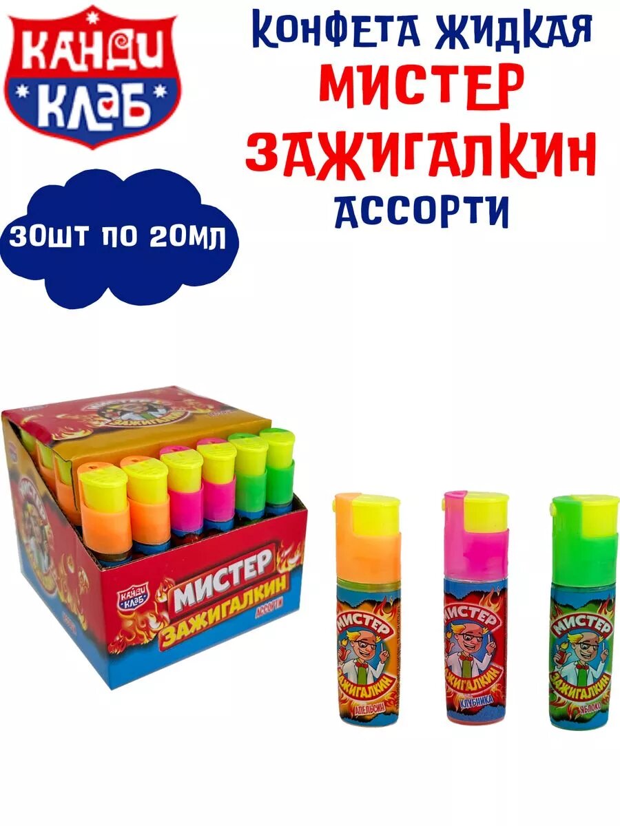 Конфета жидкая Мистер Зажигалкин Ассорти, 30 шт. по 20 мл информация: