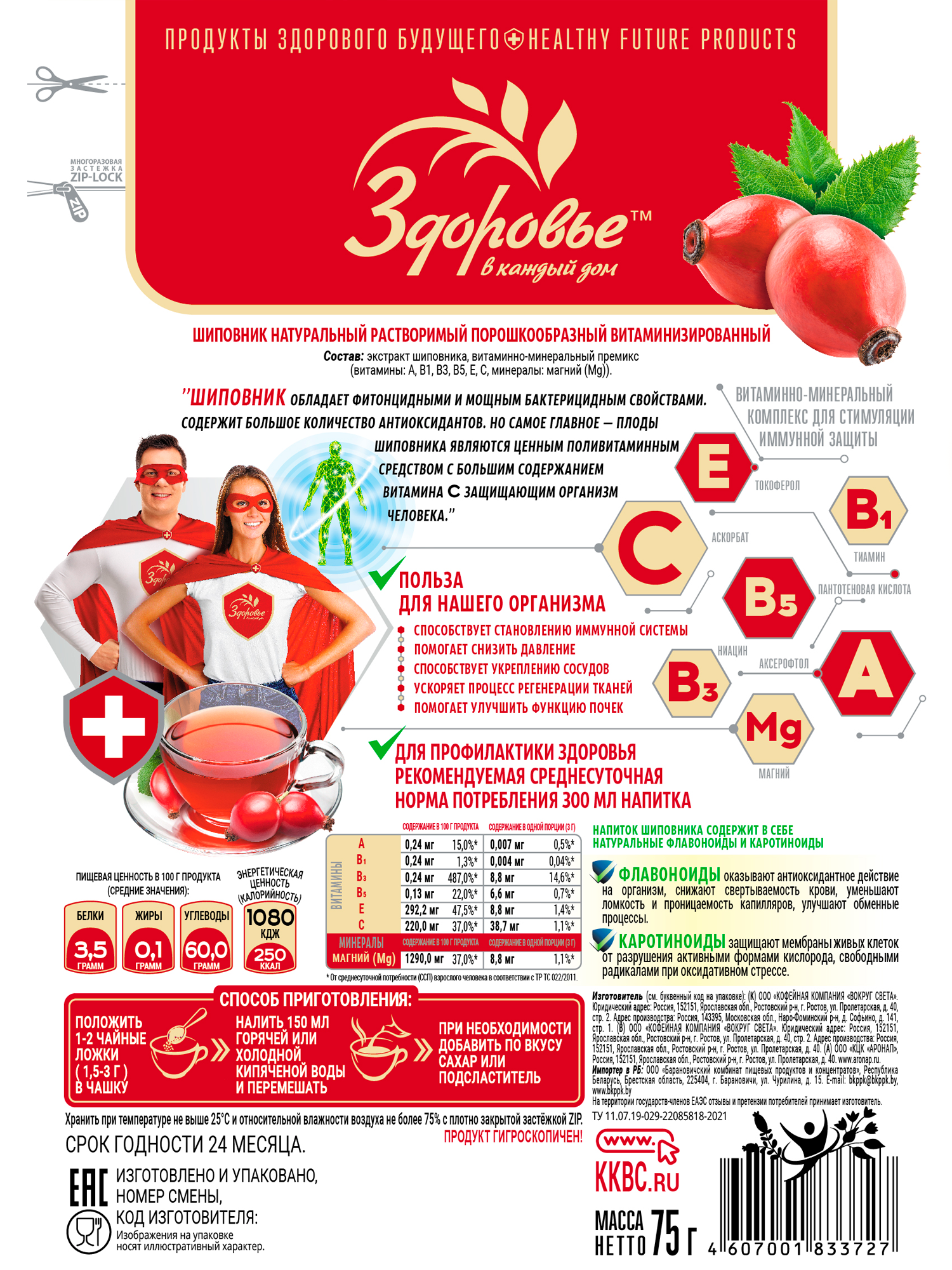 10 цен на Напиток шиповник растворимый Здоровье 100% Натуральный витаминный Порошок Без сахара 75 г