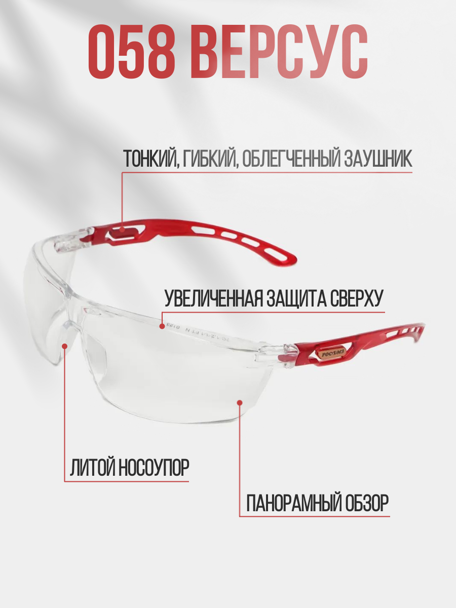 Очки защитные РОСОМЗО58 Версус прозрачные, ударопрочные информация: