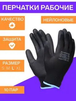 10 пар Перчатки Защитные Рабочие Fort для работы с металлом, ремонта, работы в саду, грибов, с покрытием полиуретаном, размер 9/L цвет черный, арт. 2101 информация: