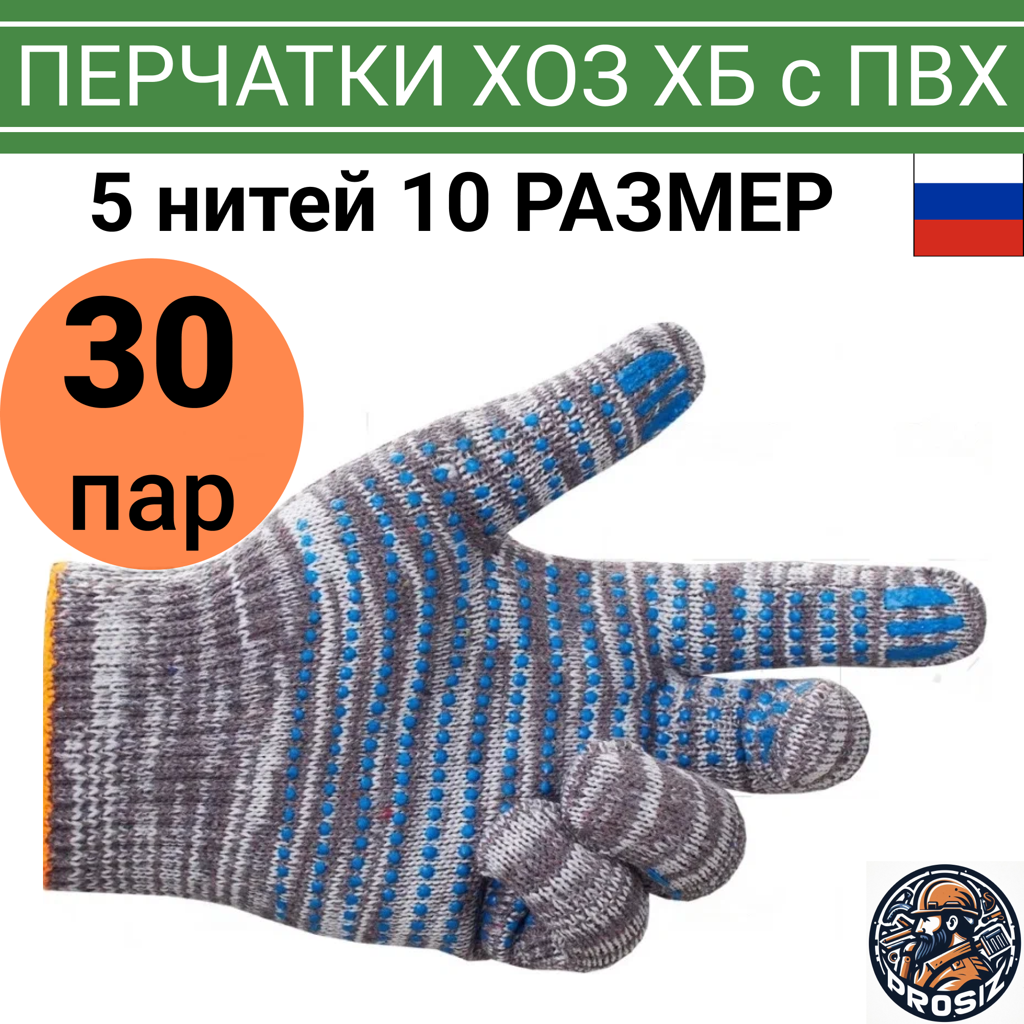 10 цен на Рабочие перчатки 5 нитей ХБ с ПВХ, 10/XL, 30 пар, ГОСТ, 10 класс, графит