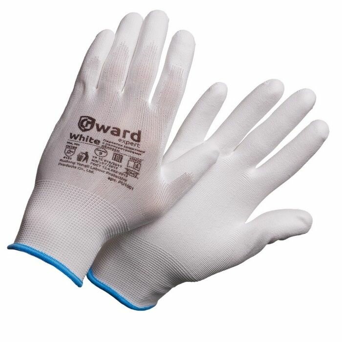 Перчатки нейлоновые с полиуретановым покрытием, рабочие, хозяйственные Gward White PU1001 белого цвета, размер 9 (L), 12 пар 982 ₽