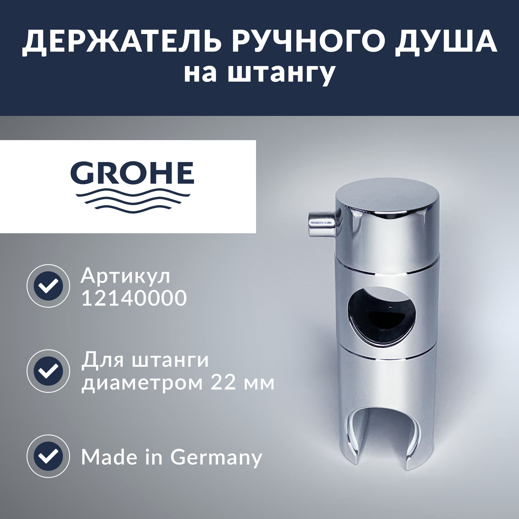 10 цен на Держатель ручного душа на штангу 22мм, Grohe (12140000)