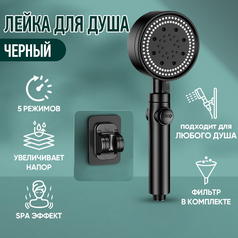 Лейка для душа 5 режимов, водосберегающая, черная, матовая