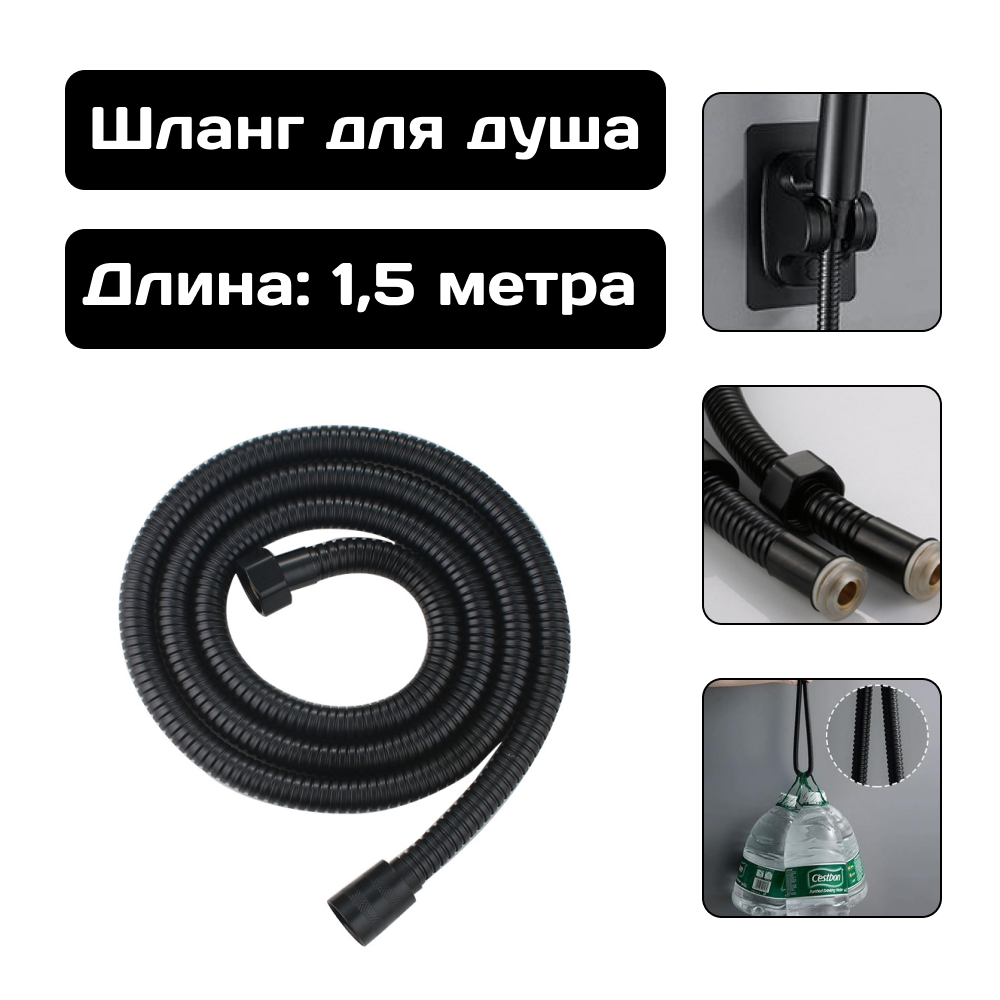 Шланг для душа 150 см. черный, для ванн и душевых кабин, усиленный информация:
