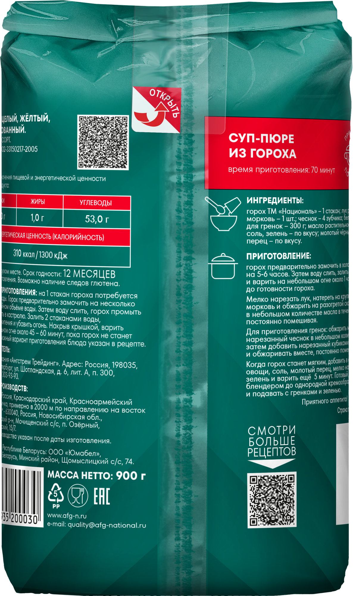 Горох целый Националь 900г информация:
