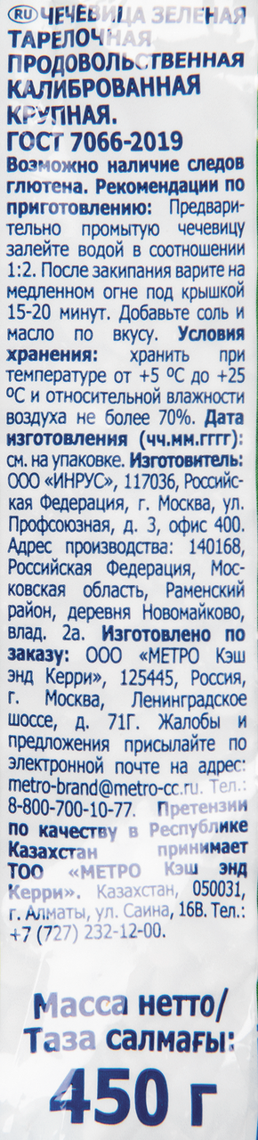 Чечевица Metro Chef зеленая цельная 450 г информация: