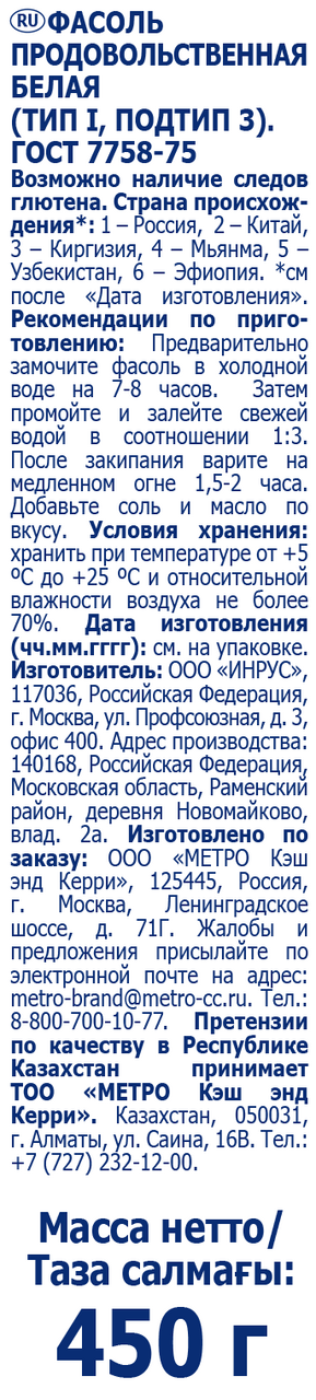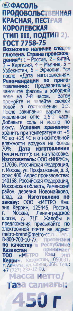 Фасоль Metro Chef красный 450 г информация: