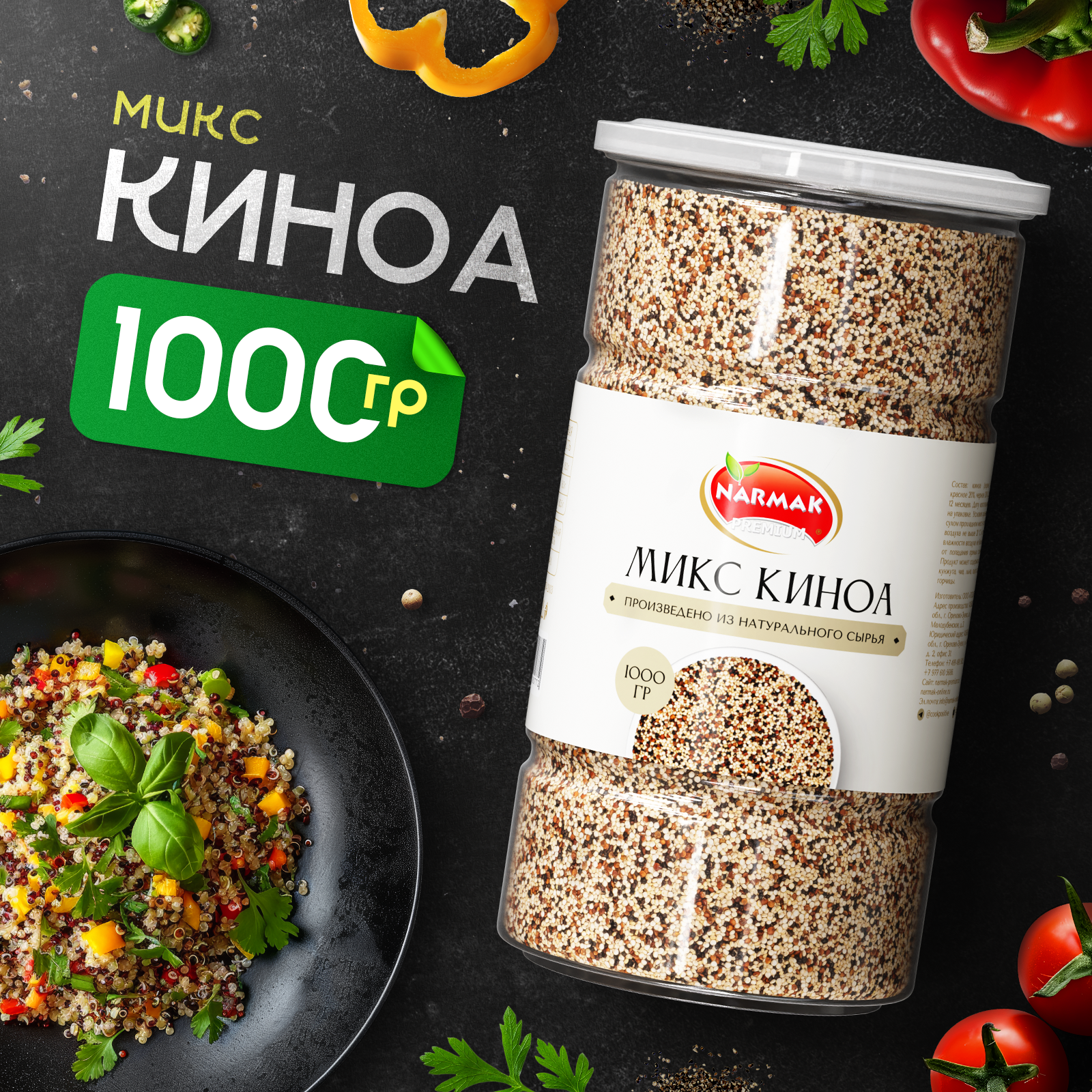 Киноа микс трёхцветное, смесь киноа из белой,красной и черной крупы Narmak 1000гр информация:
