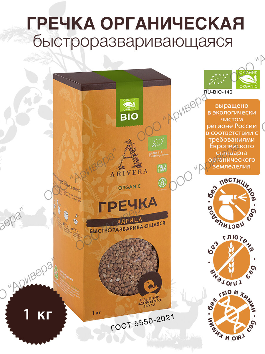 Крупа гречневая аривера ядрица быстроразваривающаяся (пропаренная)БИО 1000 г, полимерная упаковка, картонная коробка информация:
