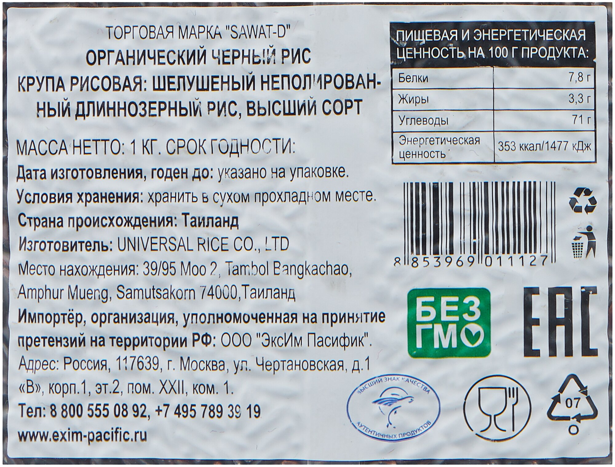Органический тайский черный рис 1 кг(вакуум-Таиланд) информация: