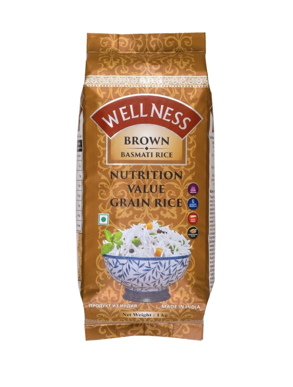 Рис WellNess Basmati Brown коричневый 1 кг, 2 шт информация: