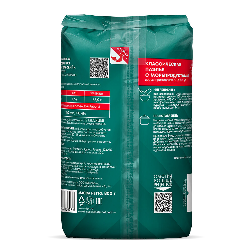Рис среднезерный Испанский Националь 800г информация: