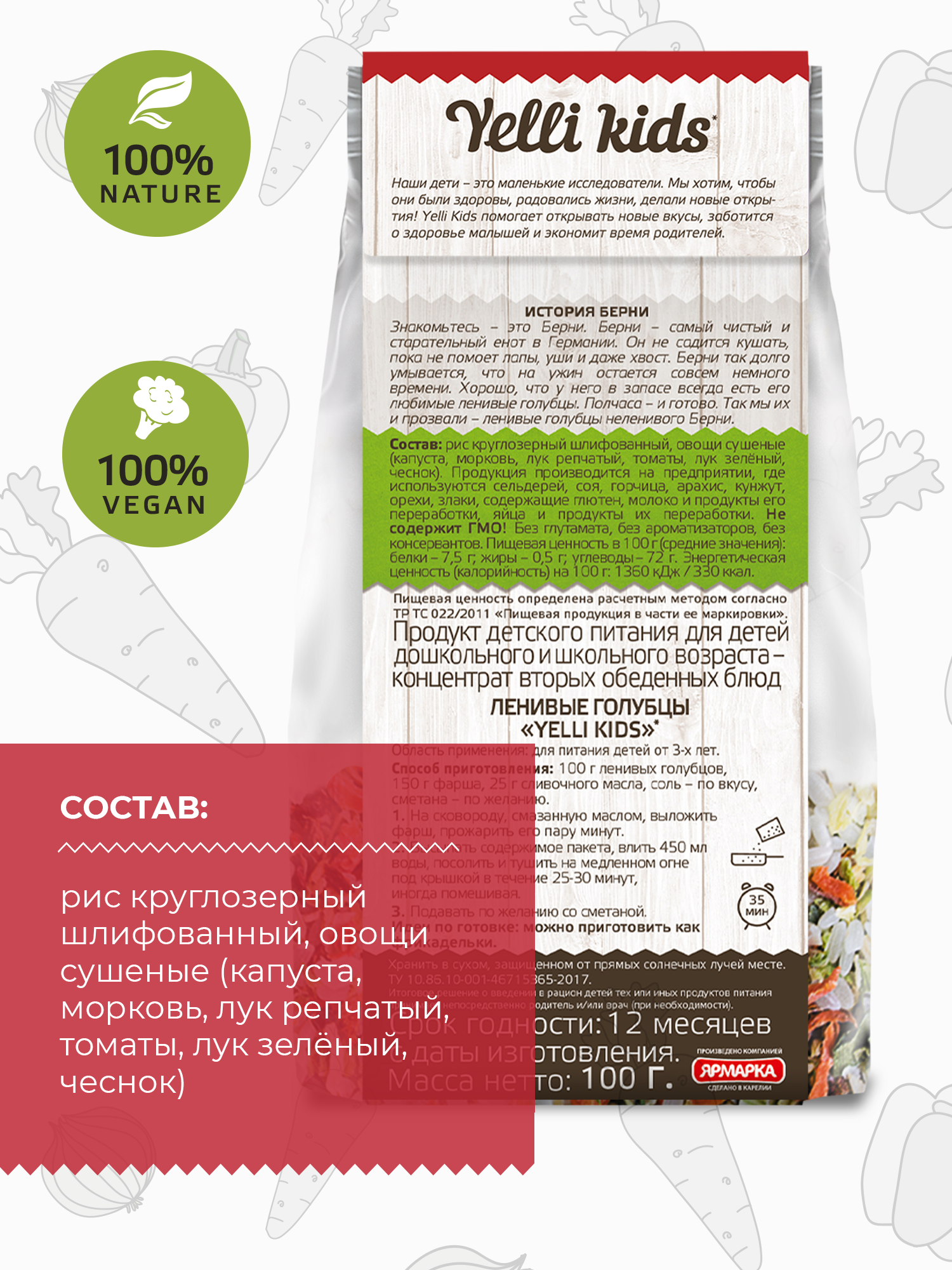 Ленивые голубцы Yelli kids 9 пачек по 100г информация: