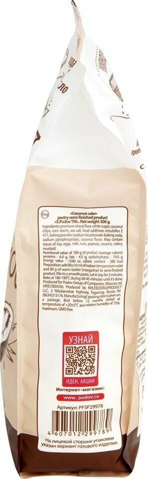 Смесь для выпечки «С.Пудовъ» Кекс Кокосовый, 300 г 2 пачки информация: