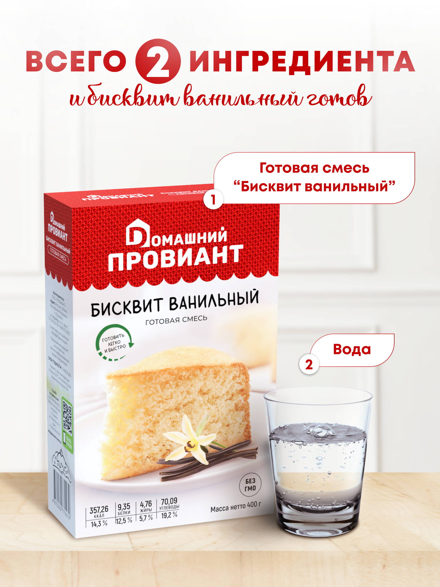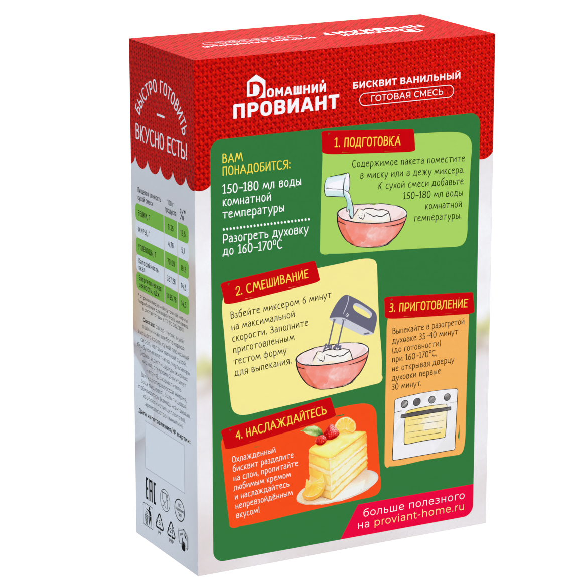 Бисквит ванильный сухая смесь для выпечки Домашний провиант / оригинальная / без ГМО информация: