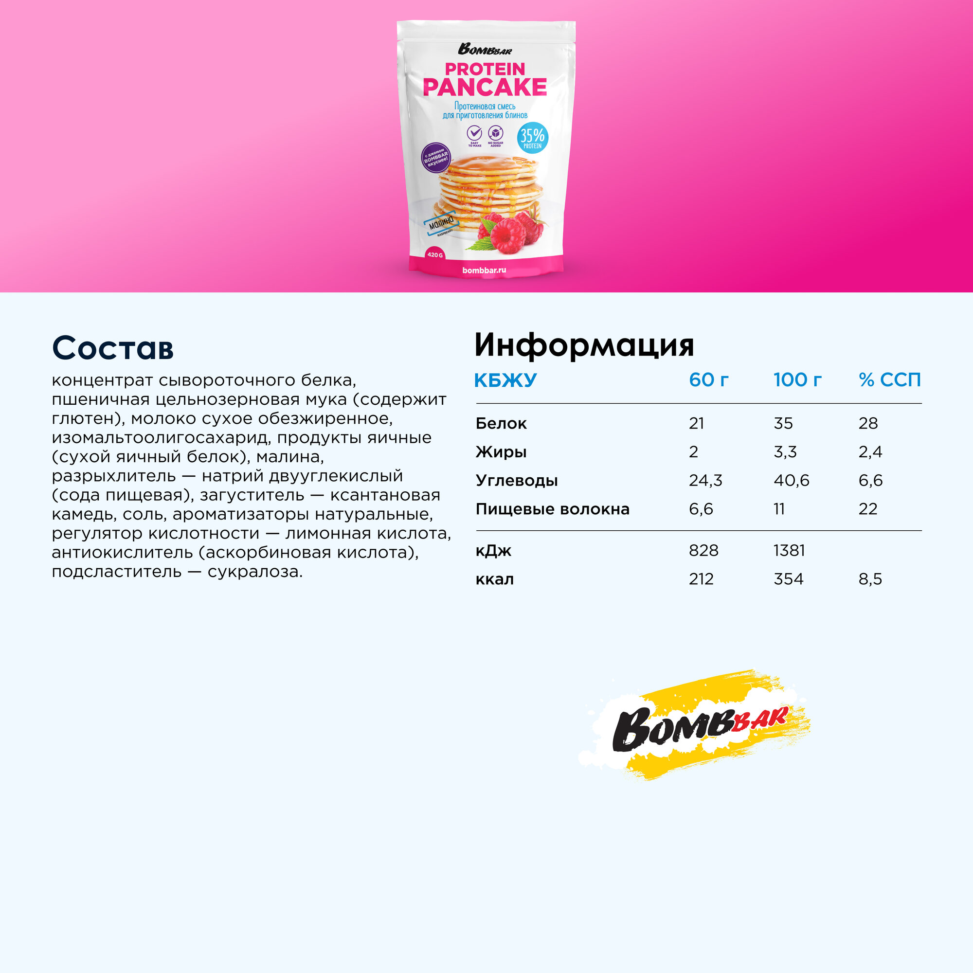 Cмесь сухая из пшеничной муки для приготовления блинчиков "малина" тм "Bombbar", 420 гр. информация: