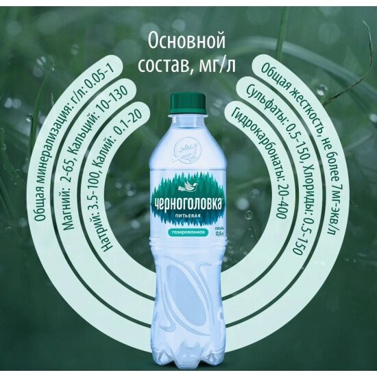 Вода питьевая Черноголовка газированная 0,5 л ПЭТ (12 штук в упаковке) информация: