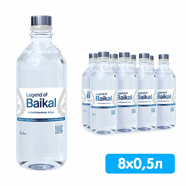 Вода питьевая Легенда Байкала 8 шт. по 0,5 л., газированная, стекло информация: