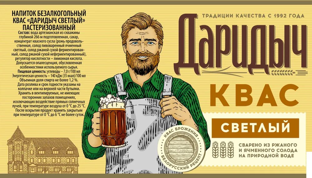 Квас Даридыч светлый 1,5л, 6 шт информация: