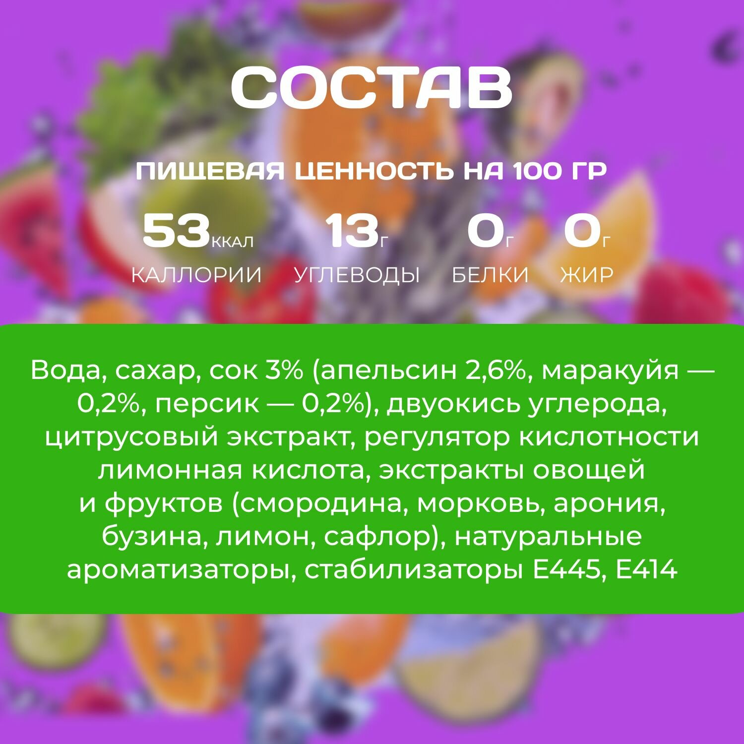 | Содержит | витамины / сок |